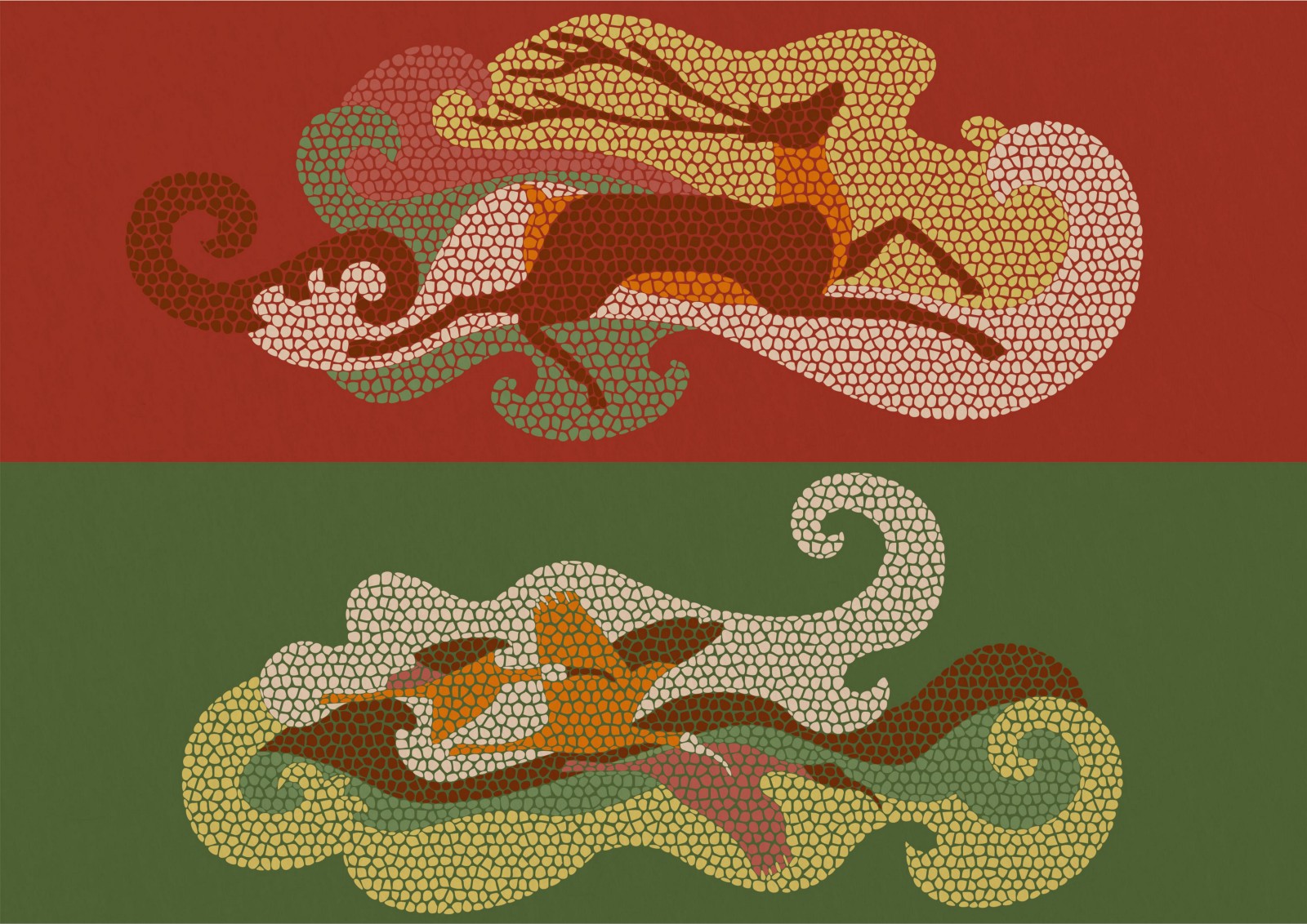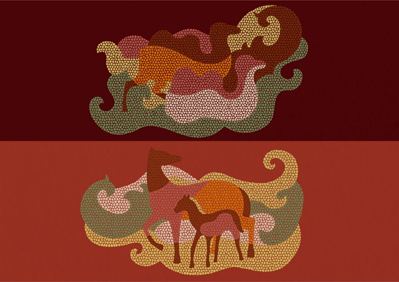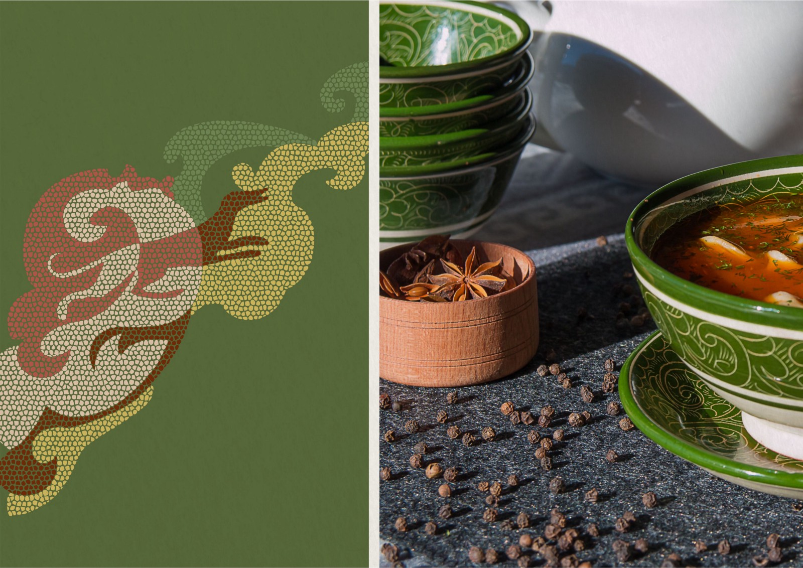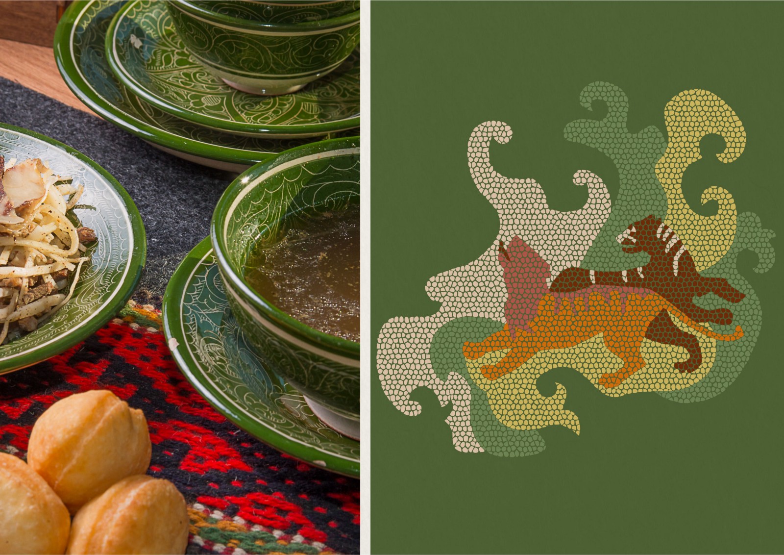 Мозаичные мотивы использованы в оформлении. Каждый паттерн показывает зарисовки степной жизни. Благодаря многообразию образов фирменный стиль может развиваться дальше.