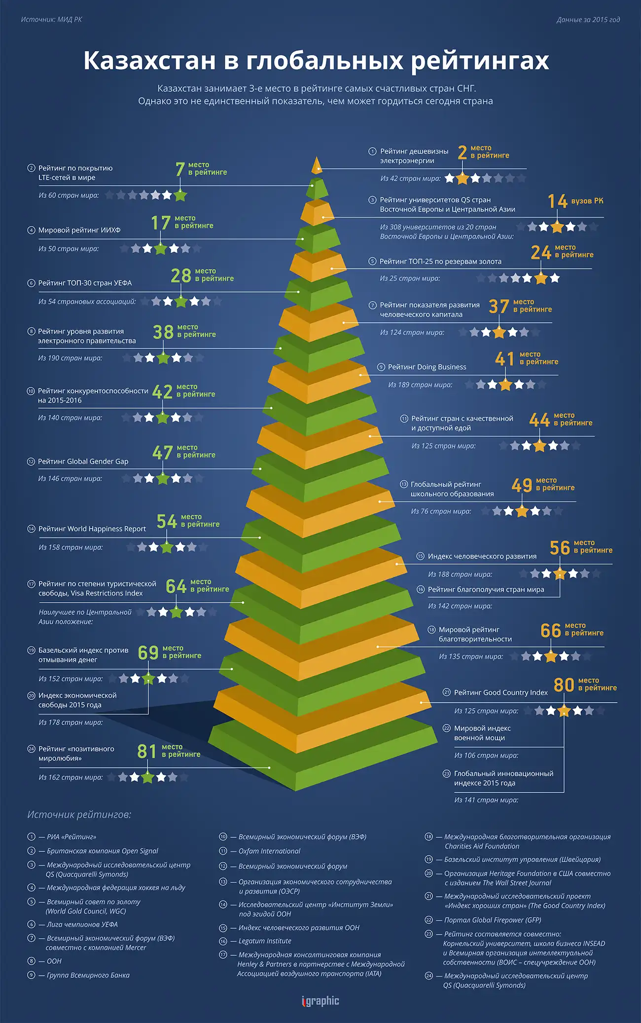 У нас мало студий профессионально занимающихся инфографикой и как правило она используется в годовых отчетах. Тем интереснее познакомиться с работами IGRAPHIC, затрагивающими широкий спектр тем, от мирового статуса Казахстана до наших каждодневных проблем.