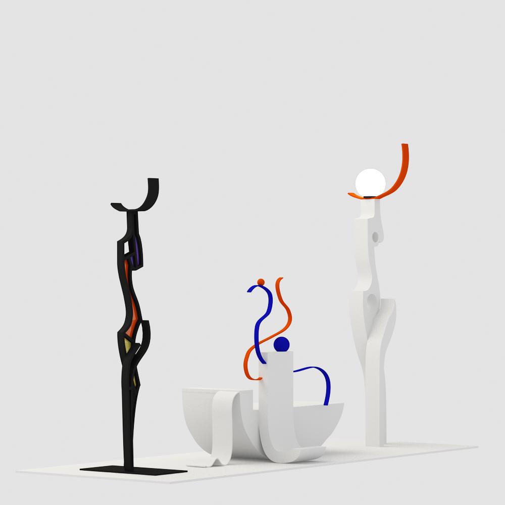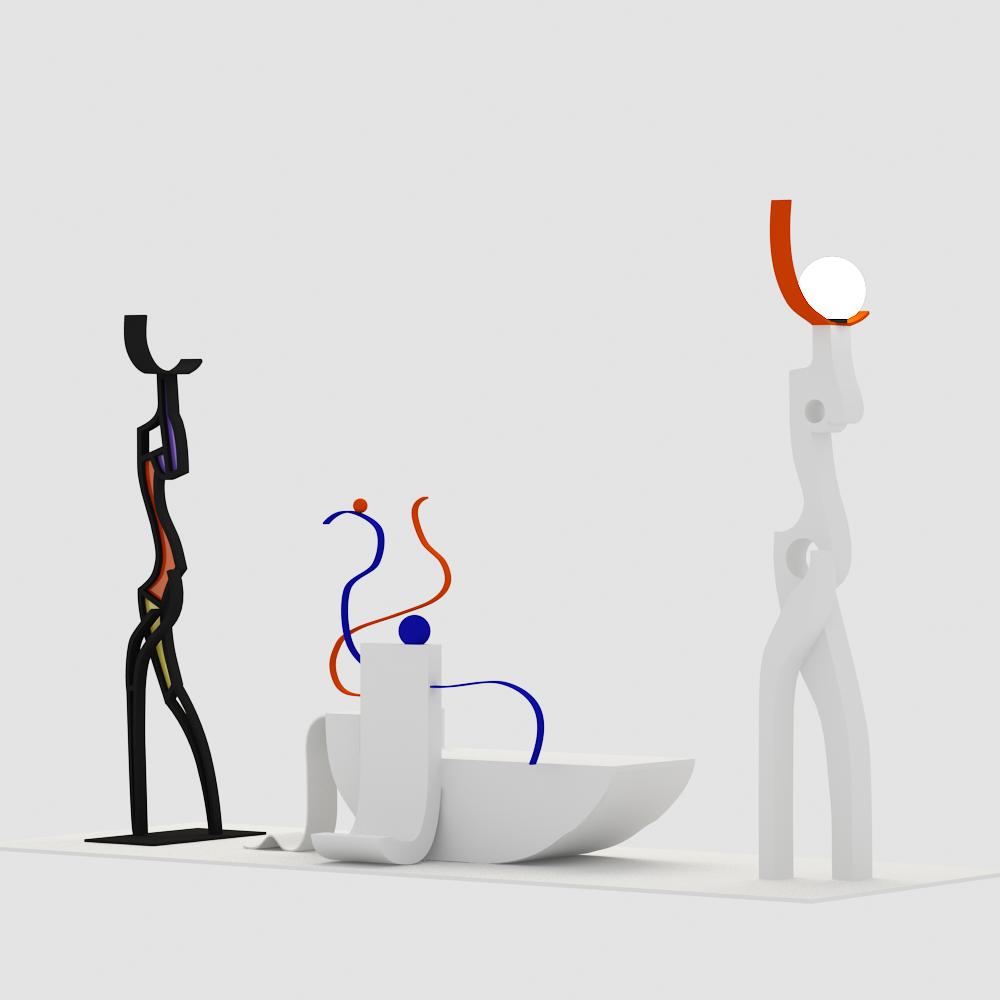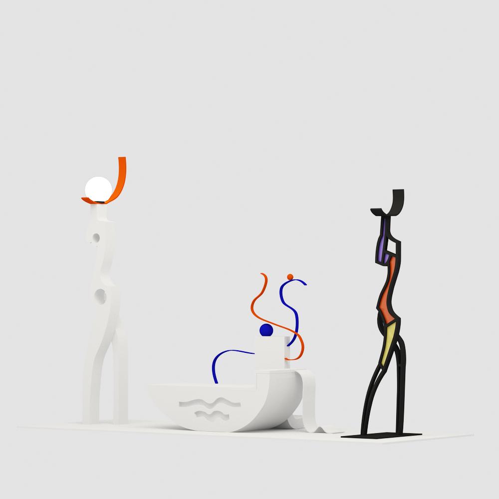 В декоре – это композиция из двух скульптур. Их характер подчеркнут линиями и цветом. Декор так же является арт-объектом.
