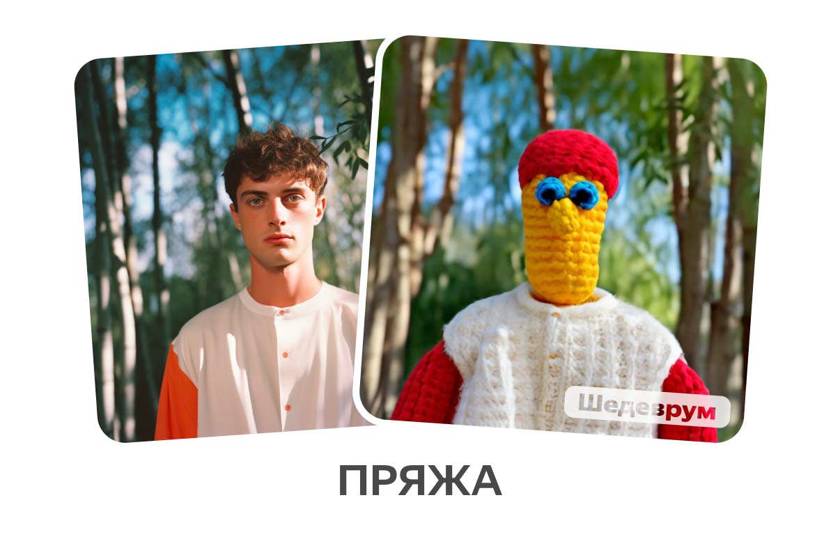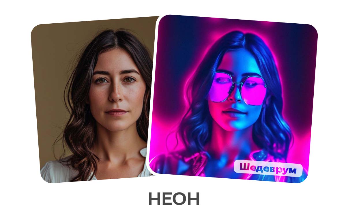 Изображения можно стилизовать под плюшевые или вязаные игрушки, кадры из мультфильмов, пиксельную графику, нарисованные кистью картинки, а также добавить на них зимнюю атмосферу, неоновое свечение и красочные цветы.