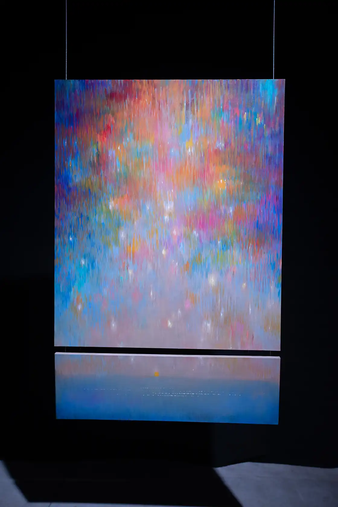 «Меня вдохновило, что всё это совпало с концепцией моей выставки. “ÜT” — не сюжет, не рассказ, а состояние. Напоминание, что свет не исчезает, даже если кажется, что его нет».