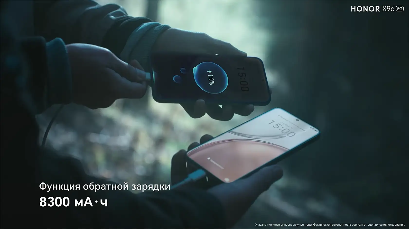 Чтобы показать главные характеристики Honor X9D рекламщики выбрали образ егеря, который, скажем так, не особо аккуратен в обращении с мобилой.