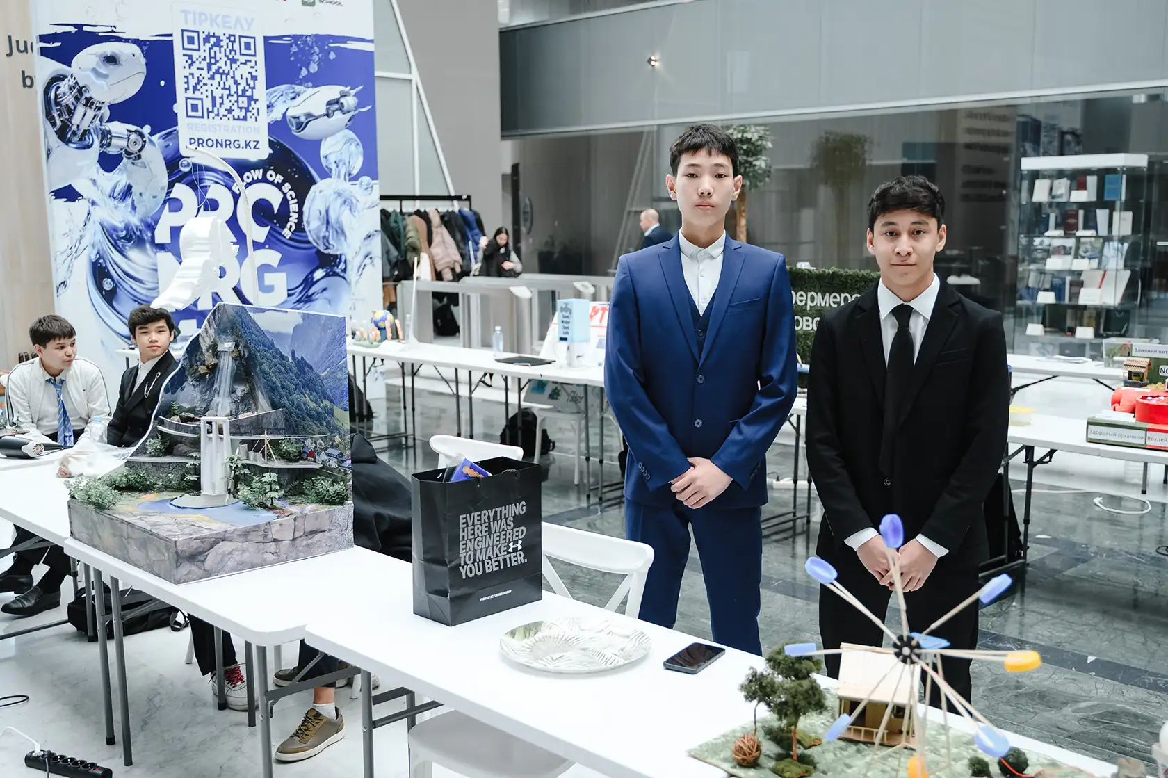 Хасен Джакенов, событийный менеджер PRO.NRG FEST, Дарын Сайынов, руководитель фонда Caravan of Knowledge: «Мы увидели высокий уровень подготовки ребят и глубокое понимание темы. Важно, что школьники предлагали не абстрактные идеи, а практические решения».