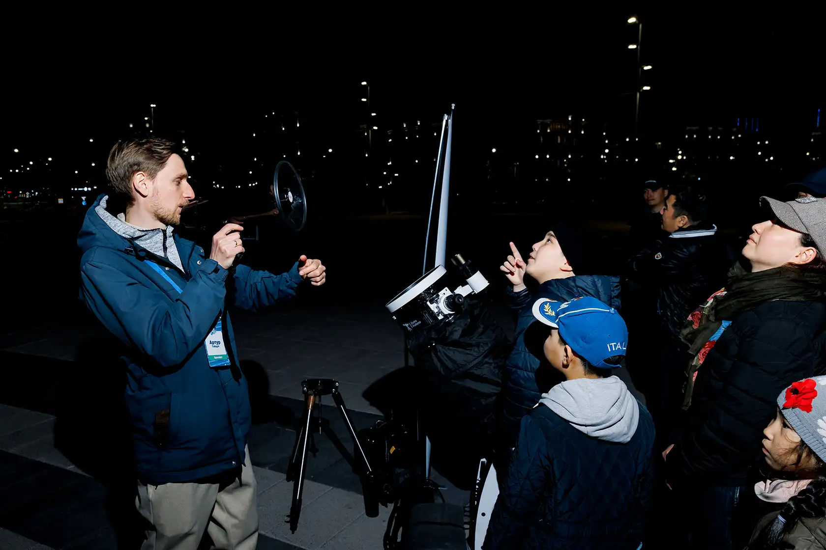 В этом году в рамках фестиваля впервые прошел масштабный вечер астрономических наблюдений под руководством Артура Гайдука, основателя школы Astro Astana и популяризатора науки. В вечернее время на территории ЭКСПО ПАРКА Астаны дети и взрослые смогли наблюдать далекие объекты — Юпитер и двойную звездную систему Мицар и Алькор — через телескопы.